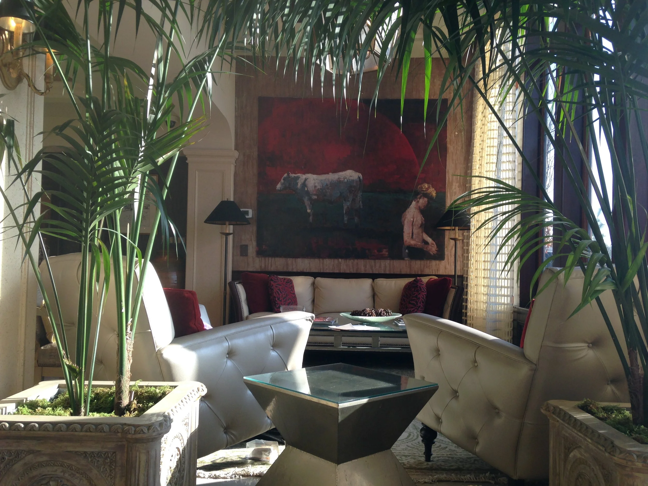 For the Delamar Greenwich, bold artworks were selected to fill the cozy interiors for a gallery-like experience in each room. Here, an oil painting by Lyme-based artist Brian Keith Stephens features in one of the hotel’s sitting rooms.